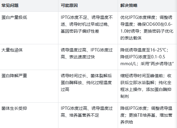 结合菌体密度调整:37℃诱导时,菌体生长快,可在OD600达到0.6-0.8时加入IPTG,诱导时间3-5小时即可;16℃低温诱导时,菌体生长慢,建议OD600达到0.8-1.0时诱导,诱导时间延长至12-20小时(过夜诱导)。