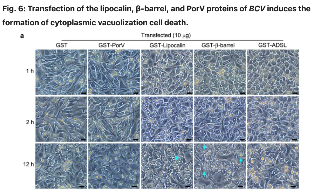 而源自BCV的细菌外膜囊泡(OMV)和β-桶状蛋白也能诱导细胞质空泡化的形成。