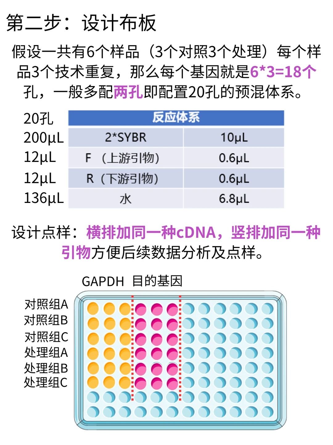 水、正反引物及SYBR预混,配置的时候可以先加便宜的再加贵的,能避免搞错浪费试剂